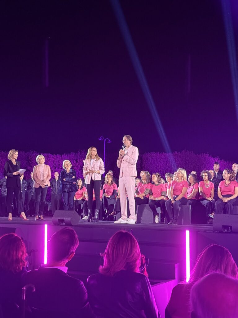 - La présentation de la campagne de sensibilisation 2025-2026 de Ruban Rose, imaginée par le chorégraphe Sadeck Berrabah et sublimée par la voix douce et engagée de Carla Bruni. La révélation a été suivie d’une performance chorégraphique spectaculaire réunissant Sadeck Berrabah et cinquante danseurs.